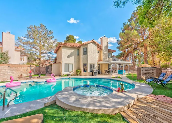 オールド・スパニッシュ・トレイル・パークから徒歩で20分に位置するVila Sol ラスベガスは、山の眺めを望むテラスを提供しています。 プールの眺めが望めるこの宿泊は、宿泊から4.5km離れたサマーリン・センター・コミュニティ・パークへ顧客を招待します。